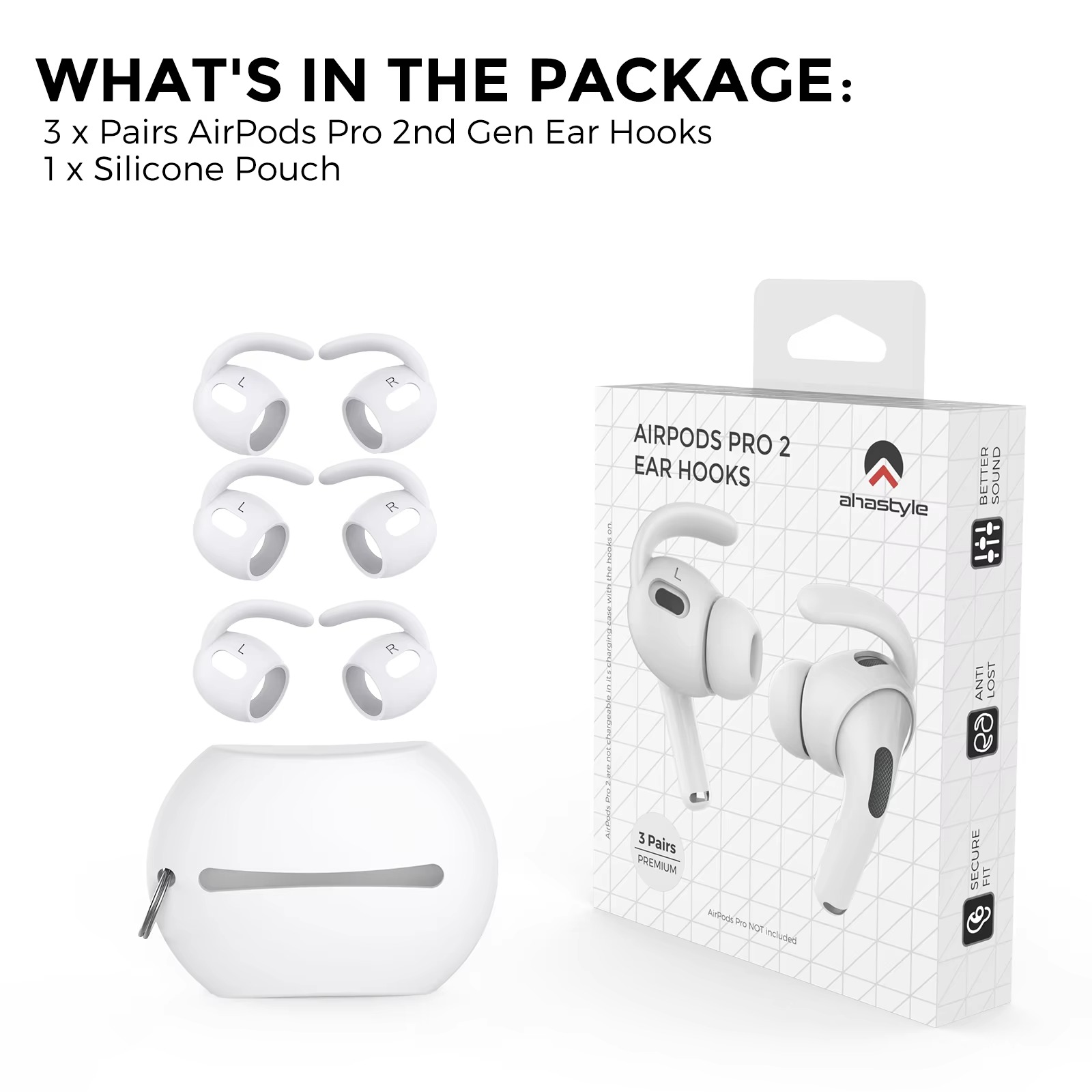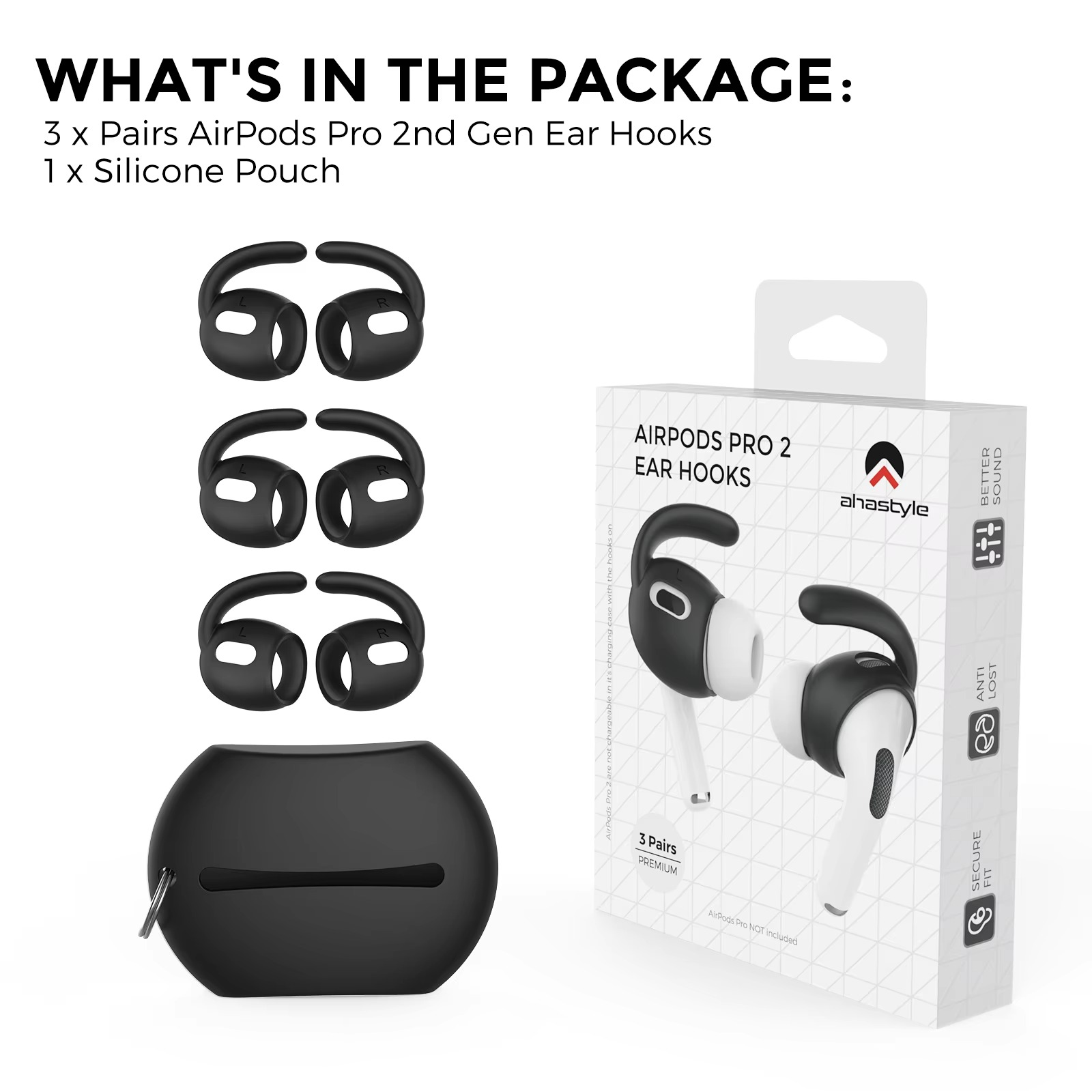 AhaStyle Silicone Earhooks for AirPods Pro2 3 Pairs Ear Hooks Covers Anti-Slip Ear Covers Added Storage Pouch Anti Slip